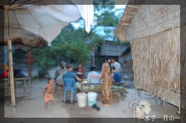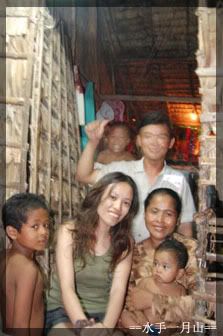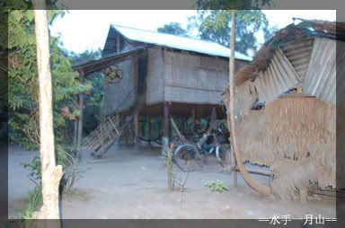 今天的照片很烂... 里头右手边的就是SAMBATH的房子. 在中间后面还有一栋房子, 是SAMBATH岳母的. 他的房子的地是属于岳母的, 房子则是他自己用木料建的. 那里是没有公共电源供应的, 靠近大路的一户人家有发电机, SAMBATH就向他们买电, 每个月十块美金, 可是电流也是到了晚上才有供应, 还不一定几点开始...