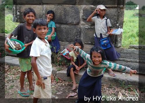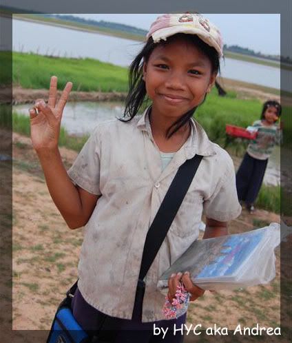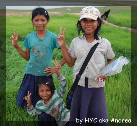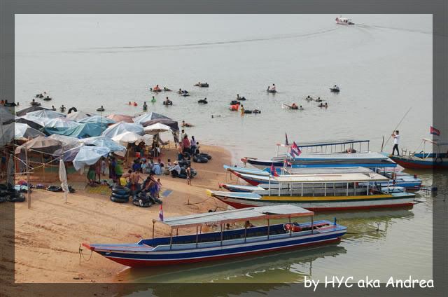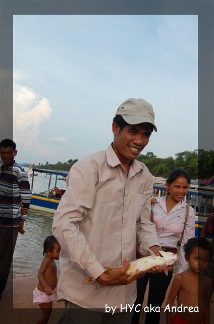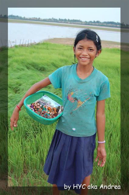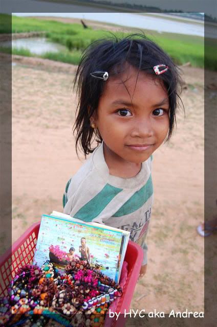 白色衣服的男孩叫SITH, 今年十七岁, 现在在年高中, 他的愿望是当老师. 他主动上前和我聊天. 也是住在对岸, 放学后就划船过来, 找机会和游客交谈, 练习英文, 同时也卖些东西帮补家用. 我还有他的电邮地址, 会把照片寄给他.