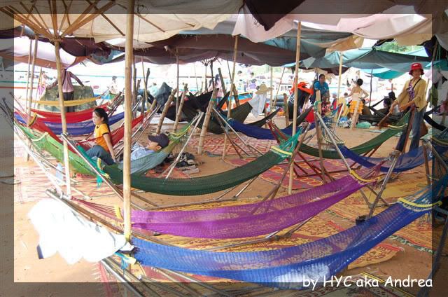 我不知道柬埔寨人怎样, 但是当地人是超爱吊床的. 甚至设计了酱的骨架, 可以随时随地挂吊床用!