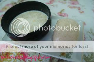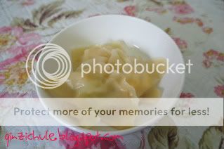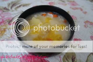 清汤的汤底是用一块粉葛,2朵干香菇和1条小的胡萝卜进去熬成的。味道非常香甜 |