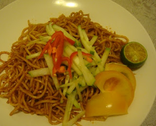 材料: 100g 黄面, 一把豆芽,一寸黄瓜-切丝,1/3粒番茄-切片,一粒酸柑。