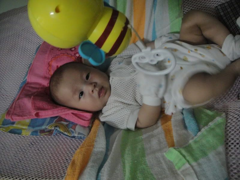 玩着玩着。。。好累了。我好爱睡,所以就用哭声来暗示妈咪。。。