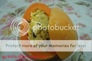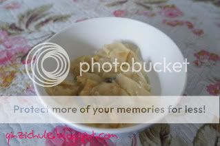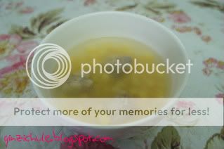 清汤的汤底是用一块粉葛,2朵干香菇和1条小的胡萝卜进去熬成的。味道非常香甜 |
