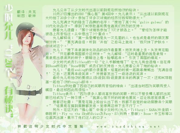 原帖由 ~Ming~ 于 28-10-2009 09:51 PM 发表 [09.10.28] 少时允儿“CF20个,有秘诀” 转自少女时代中文首站