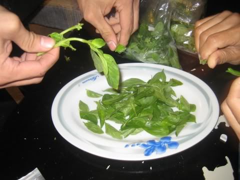 這是青醬義大利麵用的"羅勒(Ocimum basilicum)",台灣人叫"九層塔"。