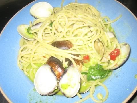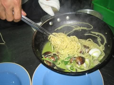 東老闆做的是「松子九層塔麵」,食譜如下: