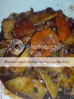 炒鱼胶肉碎一餐吃不完,隔天我把它来焖马铃薯