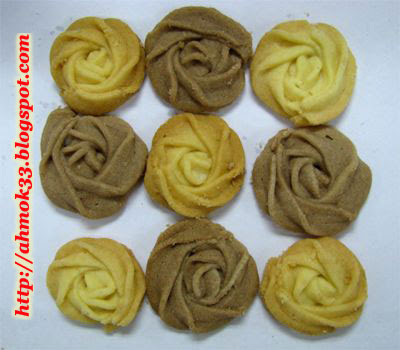 4.食谱1&2我用一半的面团加了1大匙可可粉做可可牛油曲奇,孩子爱吃。