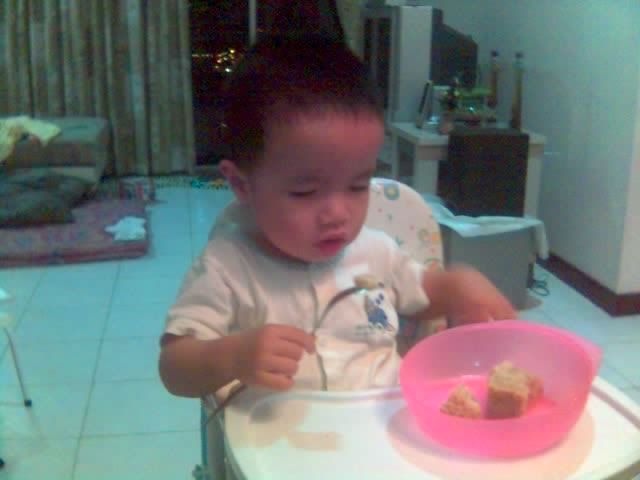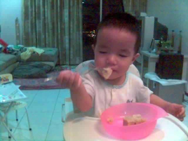 鈞今天的早餐﹐媽媽做的香蕉蛋糕
