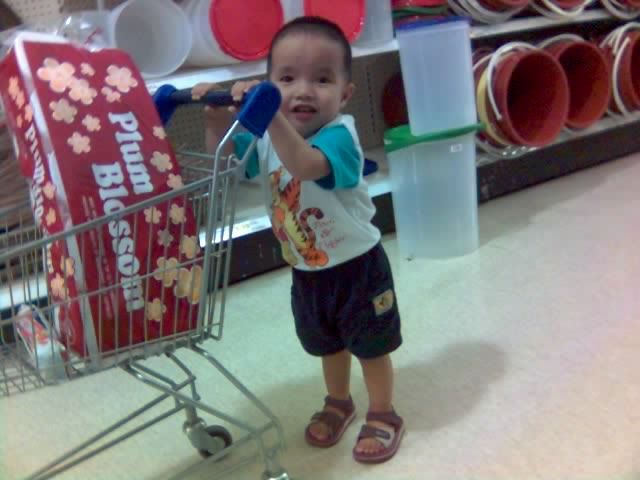 好可爱哟,还会帮妈妈推车,真是个细心的小孩