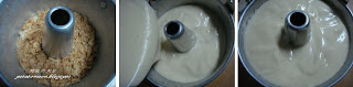 3。倒入戚风模,轻敲几下