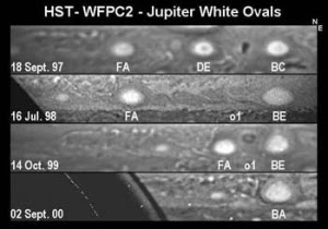 从1997年9月 到2000年9月 ,土星中部维度的2个白色漩涡(white ovals)的消失,将导致木星在未来仅仅10年内全球就会变暖18度 ,Phillip Marcus博士这样预测[11] ,而现在就如同预测的那样,土星在全球变暖。木星有了在1974年 前看不见的等离子环,25年内厚度增加200% 。木卫一电离层的高度增加了1000% ,表面温度增加了200% ,是金星的3倍。木卫二变得更亮了。木卫三也亮了200% ,大气密度增加了1000% [ 12] 。