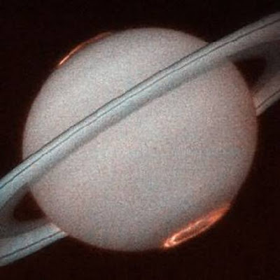 [注:Saturn aurorae imaged at both poles by HST in 1998 (NASA)]