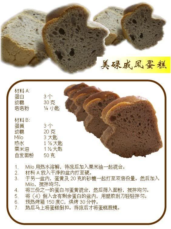 我好多年前曾经做过,但是recipe不见了,你是不是没用面粉,而是用一种小苏打饼磨成粉来做的?我还记得有放pandan zhi的,是吗?好想念那个味道。。。 |