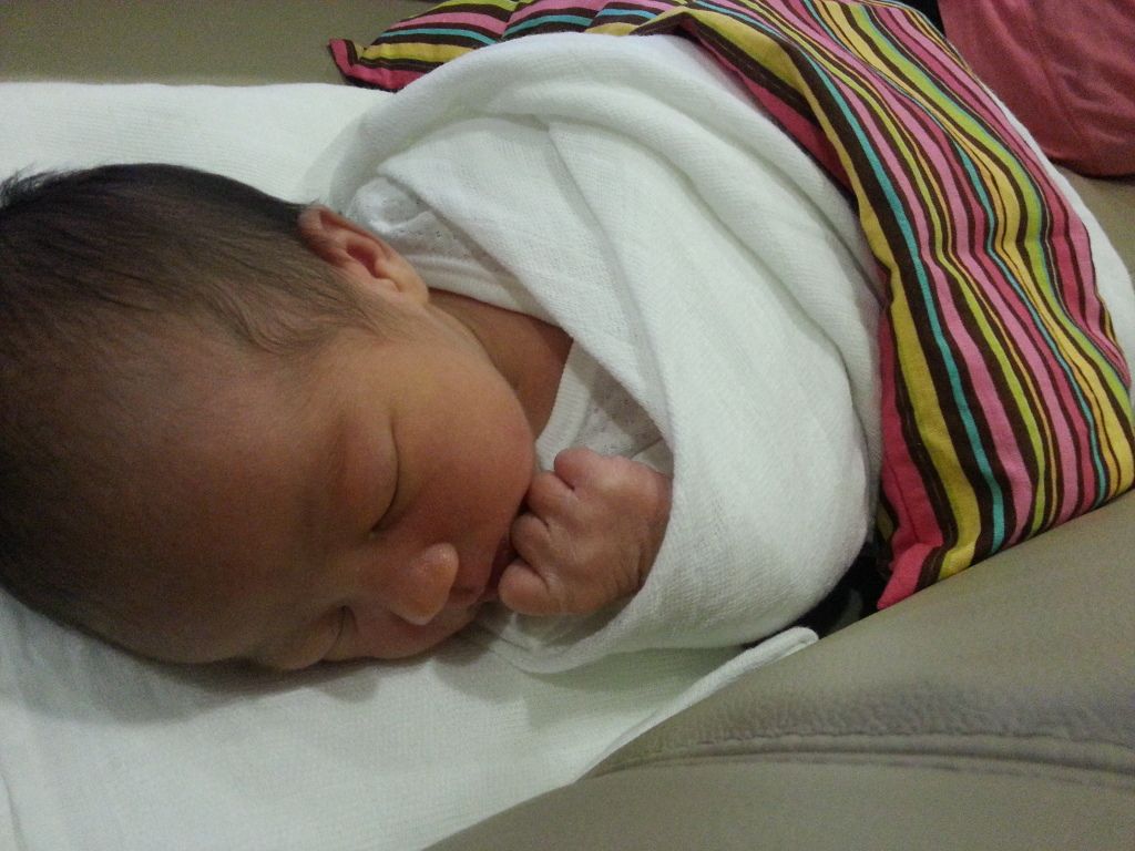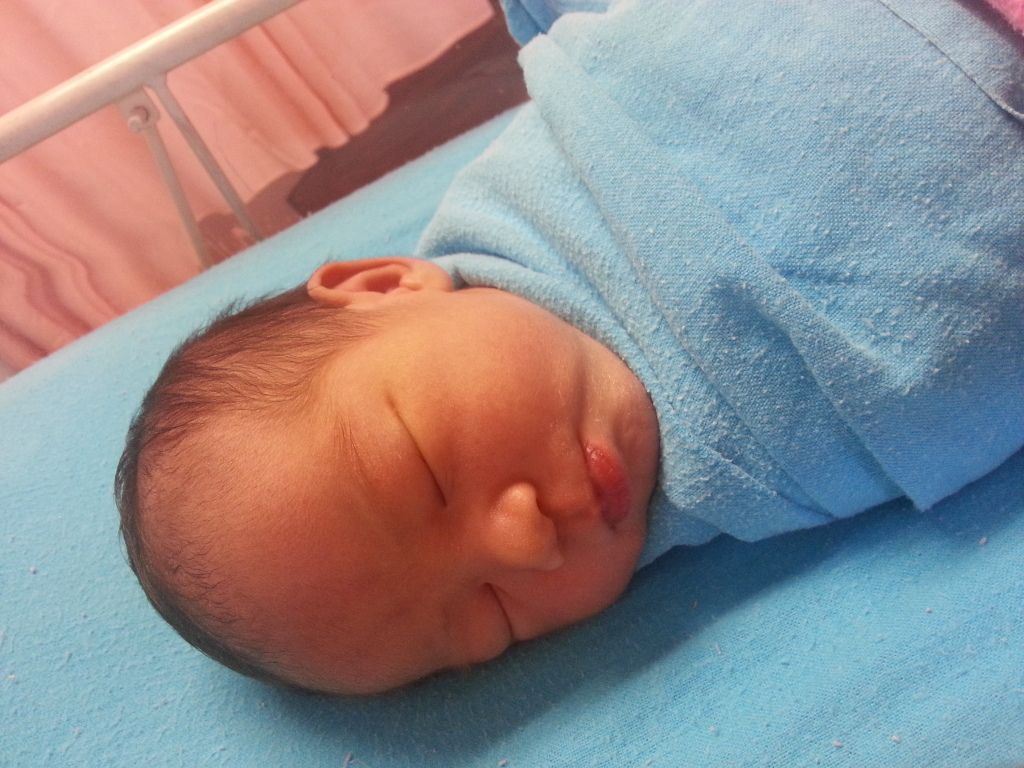 在累的当儿, 我还听见医生问我老公要不要帮baby剪脐带, 老公就傻傻的剪了下去。