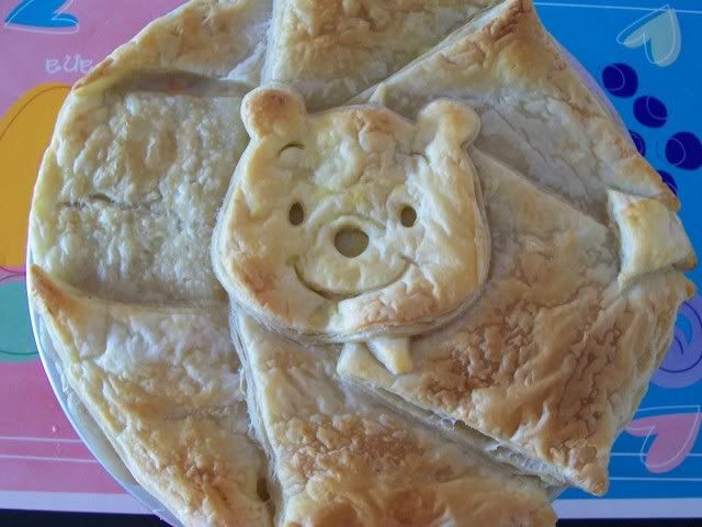 学鹿妈妈用急冻酥皮做的,太贪心,把馅料和蘑菇酱放的太满,结果切不到,只好整盘上