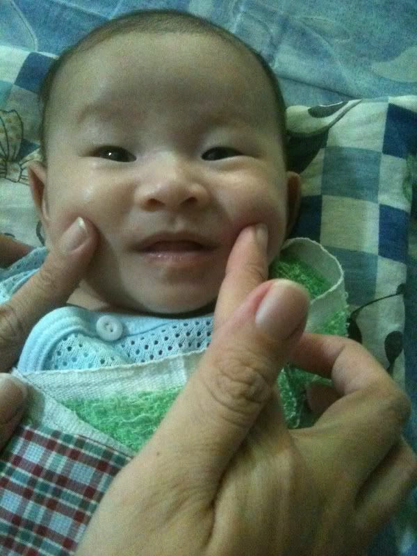 强迫性笑容我每次帮昊昊洗完澡之后就会帮他做。书上写宝宝每天吸允,这个动作是个不错的按摩方式