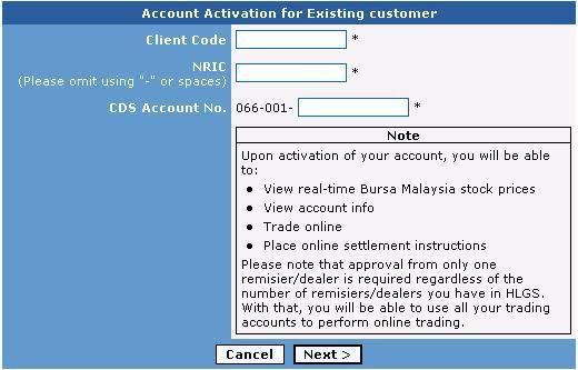 选Stockbroking --> HLG Securities.