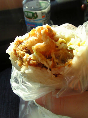 我阿姨的女婿买给我的早餐~‘饭团’(好好吃)!还一杯水没拍因为比较普通。不过真的很谢谢他们对我那么体贴和照顾。
