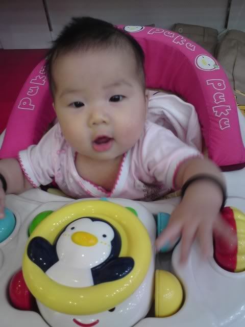 几个星期前开始坐walker,就把它adjust到最低的,脚就刚好动地了~