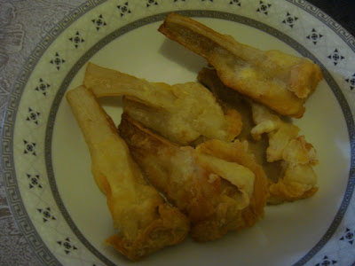 * 先用小火炸,直到所有莲藕都放入后才转大火。 |