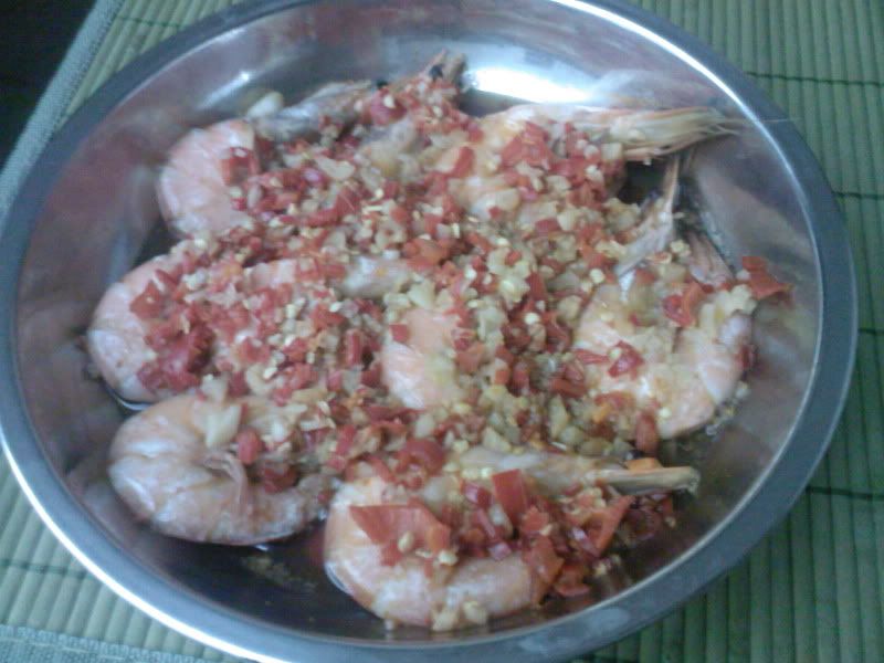 蒜香蒸虾,的确简单又好吃。。我通常会下一点花雕酒。
