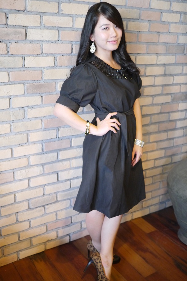 谢谢!其实这裙子不算大,因为质料真的很厚又硬的,有点类似大衣的质料,是两边交错用丝带绑在一起,看起来就显得有些厚重的感觉了。正确来说比较适合冷天气穿的衣服吧!
