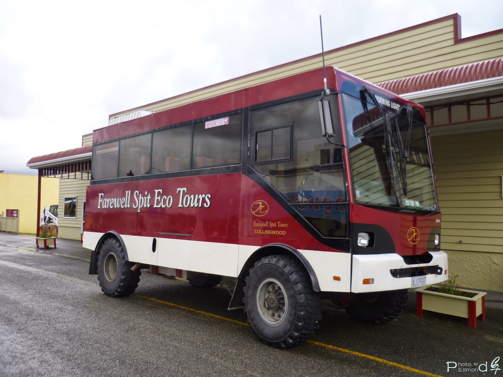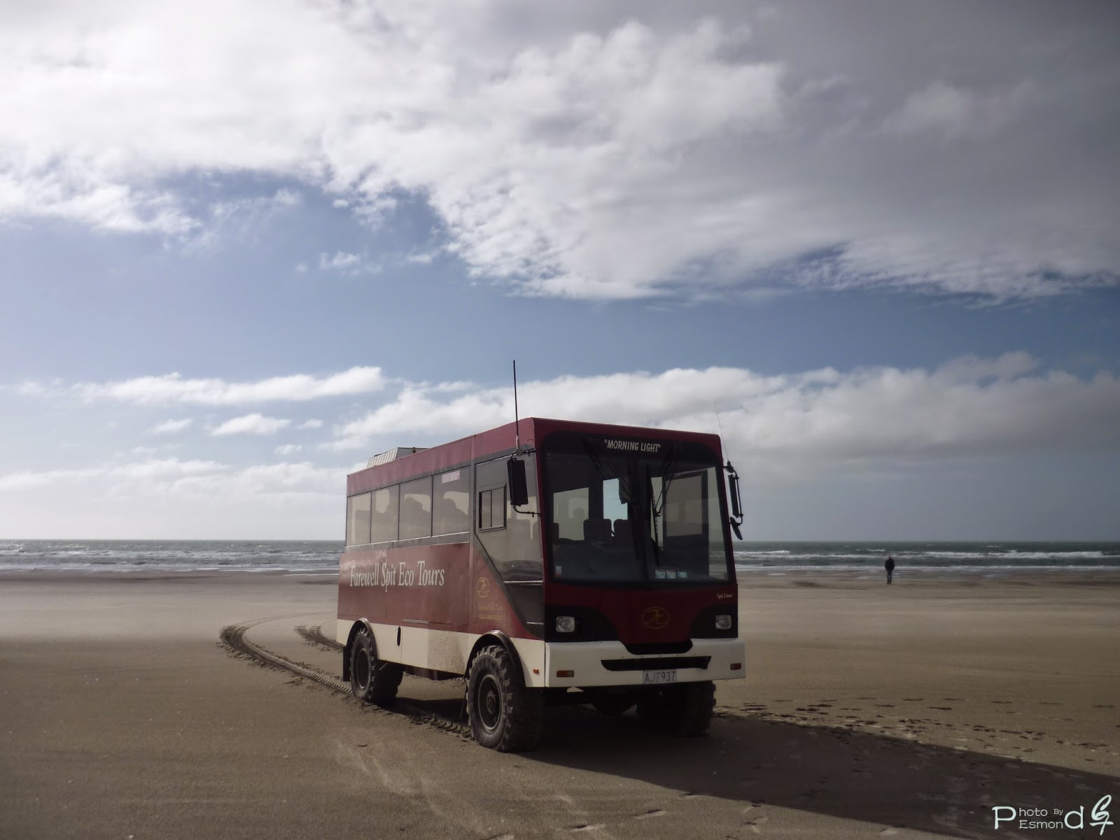 就如上一篇所说。我会去到南岛最北部的城市--Collingwood是为了Farewell Spit。Farewell Spit是一个由西往东长达26公里的沙滩。由于这个地方是受到保护,只有前面4公里是开放给公众游客。如果想要深入的体验Farewell Spit,游客就必须参加由这家在Collingwood的旅行社--Farewell Spit Eco Tour的半日或一日游。半日游和一日游的差别不大,只是一日游会在Collingwood载游客先去另一个景点--Cape Farewell,然后再去Farewell Spit。而参加半日游的旅客则必须自己去到Farewell Spit的入口等巴士,然后在乘搭旅行社的巴士进去Farewell Spit。对于一个没有车的我来说,当然是参加一日游咯!!!啊,忘了说说,这个Farewell Spit的一日游是需要在低潮时才可以进行的,也就是说每天的出发时间都会不同,而且每个月的某几天也会因为退潮的时间而不能进行Farewell Spit的一日游哦!!!想要去Farewell Spit的朋友可以先去旅行社的网站了解详情。