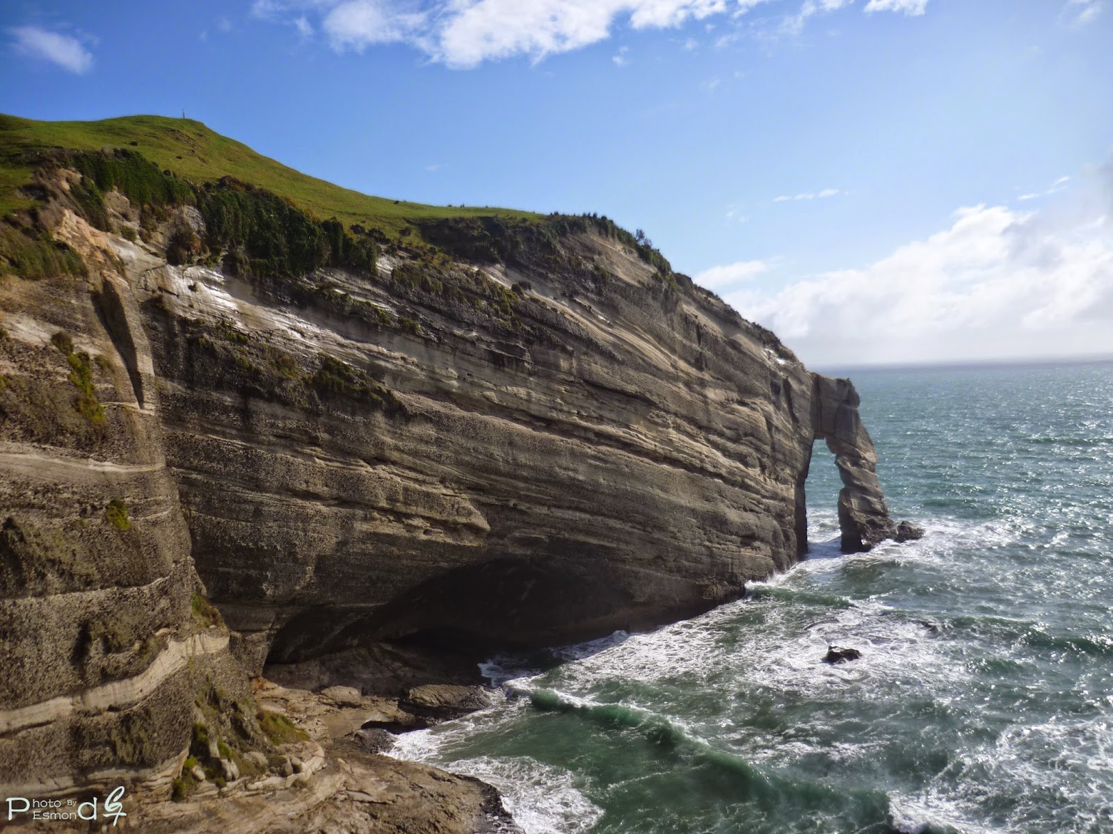 幸好,在抵达Cape Farewell,天气转晴,可以看到大大的太阳哦!!!Cape Farewell的景色不错哦!!!但大家可要小心一些,这里的风蛮大的,不要太靠近悬崖哦!!!Cape Farewell是开放给公众的,如果有车的朋友不妨自己来这里走走看看。Cape Farewell的名字自然和我们大家熟悉的Captain James Cook有关系,这个地方就是这位船长命名的。这位Cook船长还真的很忙一下,基本上纽西兰蛮多地方都是被他命名或者和他有关系。