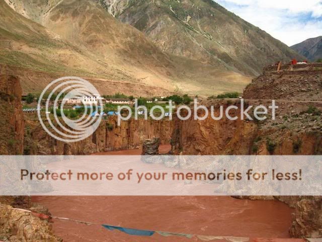 从巴塘出来就开始都是土路了,到竹巴龙时,我们过金沙江大桥,说是大桥,其实江面很窄,桥也不大,还只能一辆车一辆车的过,有武警检查。这面是四川,过桥就是西藏了,所以今天我们也真正进入到西藏了。到了桥边,车上的其它游客都相当激动,因为马上就要踏上西藏的土地了。几乎全车的人都下车和四川西藏两省的界碑疯狂拍照。我确没有那个心情,脑子里只有马上就要到来的检查。能否进藏在此一举了。 到了检查站边,上车检查的是一个小战士。等轮到我时,我假装镇定的讲我的仿制身份证递过去,并且刻意的和旁边的人用中文聊天。可能是我坐在车后,而且前面被检查的游客都没有什么问题,战士只是扫了我的证件一眼就到后一排去了。也或许是我看起来像中国人又说中国话的原因吧。总之检查并没有我想象的那么严格,还害我紧张出一身冷汗。过了澜沧江后海拔又开始升高,路也越来越险峻。我的窗户下面就是峭壁,路上还有许多塌陷的路基、修路用的石子小山一样堆在只有一车多宽的路的里侧,没有办法躲避,只能是一侧轮子骑在上面走,车就是常常斜着,可怕的是它向深谷一侧倾斜着,还颠着,你不敢往外侧看,因为你看不见路,只看见深谷,路在前面也看不清,因为都是石子堆起的包和无尽的弯,就没有直的路 。给我印象最深的是在多美村,路边有许多藏族的小孩,站在路中向你伸手,离村很远时,一个站在路中的小孩执着的不动,手伸向我们的车,没有办法,车只好停下,我们还说笑着,说给他点吧,并为他照了几张像,结果刚没走几步,迎面跑来了一堆的小孩,伸双手拦住我们的车,想走是不可能的,就在我车一停稳的时候,冲上来4个大一点的小孩,让你还来不及反应,就拉开了我们的车门从车里抢东西,好在我反应还快点,马上给油,车动了,前面的小孩躲开了,我们身边都没有很顺手能拿的东西,被抢了几瓶水,:@ 后面12车的老霍马上鸣起了警报,很悬的,后来的一路尽是看到向你伸手的了,大人、孩子、老人,无一例外的都把手伸向你,我认为一个民族贫穷并不可怕,最怕的是懒惰,是只会伸手要,由此我感觉中国政府对这一地区的扶持政策是不是有问题。晚上到八宿已经是10:30了,吃完饭休息都过半夜了,而且早上已经起不来,实在太累了,现在已经不用安眠药也可以睡了。晚上到八宿已经是10:30了,吃完饭休息都过半夜了,旅行进行到现在,高原反应早已不是问题,我几乎一沾枕头就睡着了。