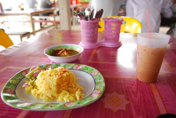 巴杀的 nasi minyak , 最靠近港口那边的一挡, 选这一档因为蛮多人在排队. 那一家好吃? 就得请红手兄介绍咯~! 话说回来, 红手兄有钓到 Tonggol (之类的发音) 吗? 我在吧杀看到很多, 张得很像 Tuna , 拿来生吃不知道怎样?