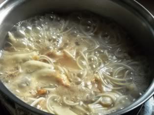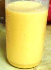 ~将鸡蛋打散,连同淡奶倒入糖水中拌匀