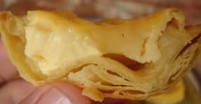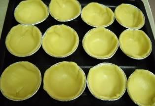 (这是我第一次做蛋塔使用的塔皮,参考'千层派'的食谱,可是效果不明显,并没有一层层,所以这一次的我自制了"油皮",所以油皮使用的面粉和牛油的份量并没有测量,大概大概而已)
