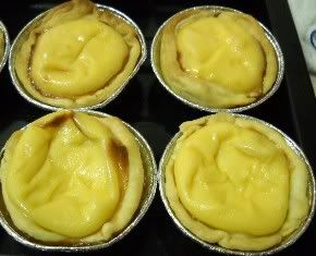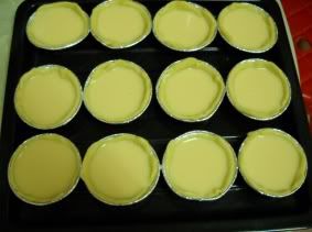 淡奶+蛋液 杆好的蛋塔皮 倒入蛋奶液 烤好的蛋塔