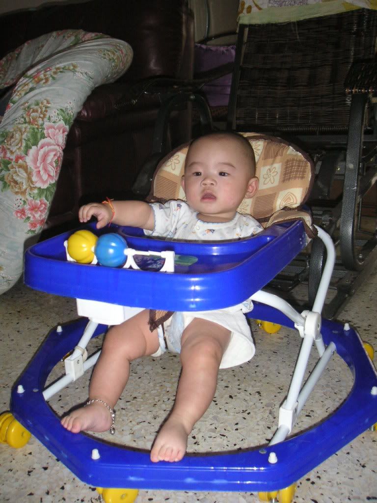 楼主,不要给宝宝坐walker啦..很危险..给他多一点在地上爬比较好... |