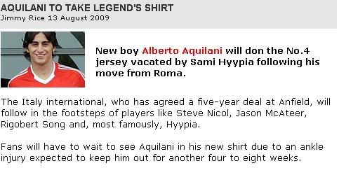4号球衣是序steve nicol,jason mcacteer, rigobert song 和刚刚离开偶们的hypia