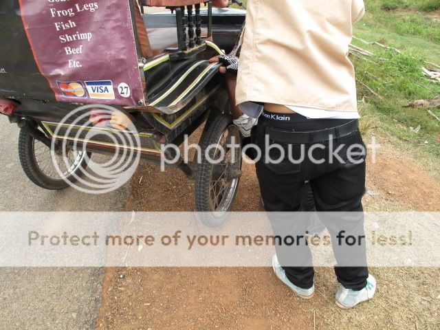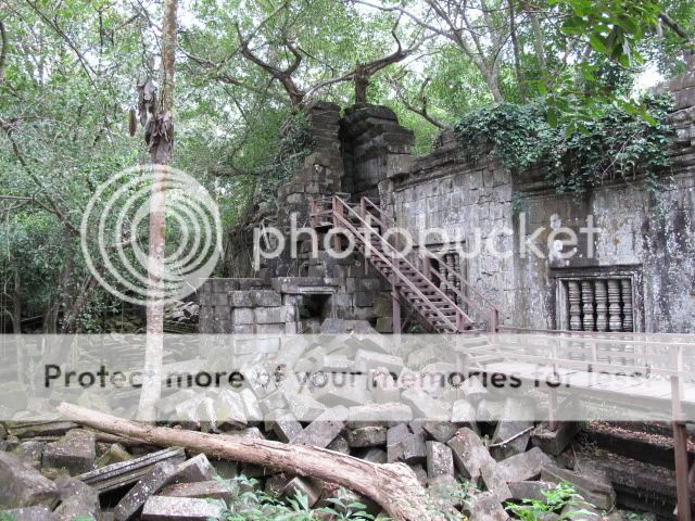 结果.....我终于明白为什么他要买手套了..... 路上的风是冷到我都受不了..... 我还要拿书包来挡风..... 所以如果要坐tuk-tuk去Beng Mealea的人最好准备jacket, 一路上我只看到另外一个洋人坐tuk-tuk去Beng Mealea, 太远了! 起初我也以为只能坐车去, 没想到第一天到Siem Reap时, Pete告诉我路况现在比较好了, 可以用tuk-tuk去, 而因为比较省钱 (差USD20), 所以当然是选tuk-tuk.....