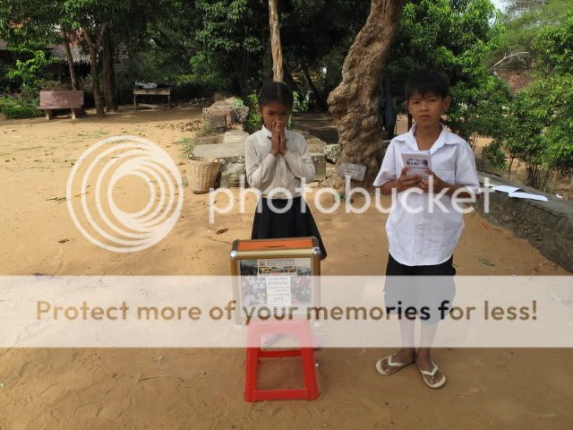 离开时捐了一点钱给孤儿园, 这次不用怕别人看到所以不用折起来小心的放进去箱子, 因为都有 X000 riel.....