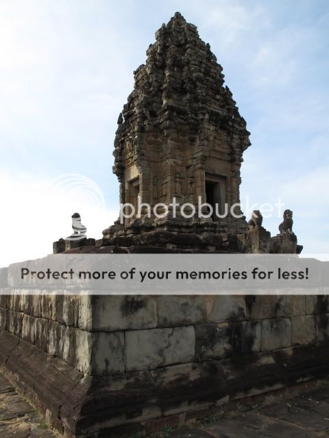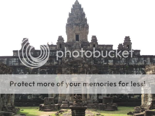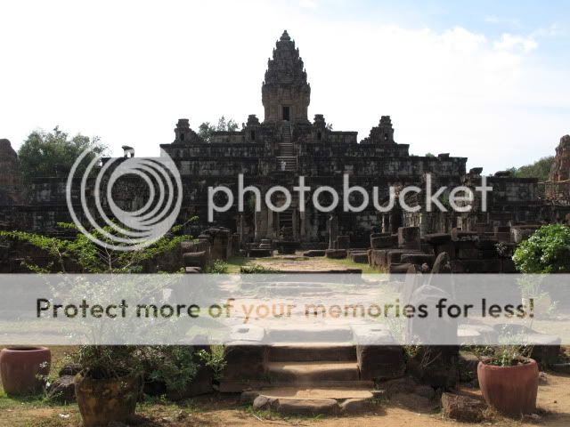 Bakong巴孔寺为Indra VarmanⅠ所建,它算是吴哥遗迹中第一座多层式的神殿山,也是吴哥王朝第一座用砂岩石块代替红砖的寺庙,因此意义非凡,它曾经是市中心的大型庙宇. 远远一看,只见一尖顶方型的高塔,立于较宽阔的塔基之上. 5阶式的高塔据说是象征印度教里的神山“须弥山”,神殿里供奉的是湿婆神(Siva).