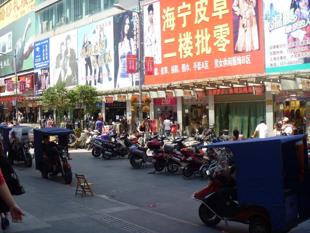 这里的货物很多,分布在多栋大楼里。我们慢慢看。也有很多人是要来选货的。不过我们在这里已经要换季入秋了。所以有些店面是把T-shirt折扣卖出去,要不然大多数的商家都是卖秋季的衣服了!