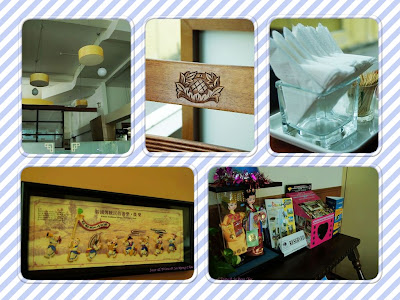 这里的室内装潢和灯饰都很特别下,我很喜欢那个鸟笼灯饰,也喜欢那个天使捧水晶灯的喷水装饰,更喜欢大大个黑板,很有学校风味,可以缅怀一下。值得一提的是,这里的服务先生小姐都蛮帅+美下的 =P