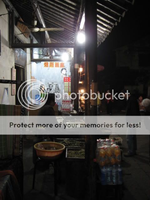 走进窄小长长的弄,感觉冷,可能是西塘靠水吧!一路看地图一路问人,过了桥走到塔湾街。沿途看见很多店开始关了,就开始紧张了。找了几间住宿不是满了,就是贵RMB360一间房。好不容易找到烟雨人家,房价RMB100。 |