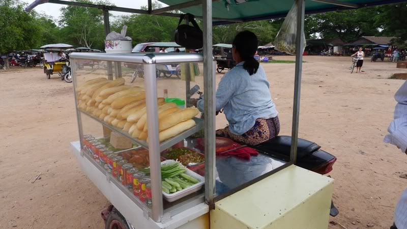 我在小吴哥外面原本也要买那档的法国面包可是他坚持1$,不能减,我直接走,最后在市区吃了两次.哈哈.