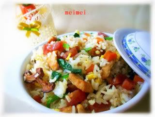 颜色艳丽。。。看似配料多过白饭。。跟我一样!
