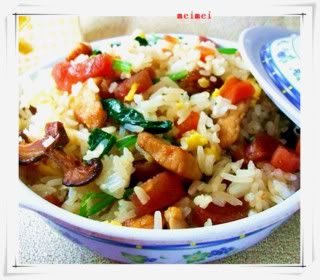 颜色艳丽。。。看似配料多过白饭 。。跟我一样! |