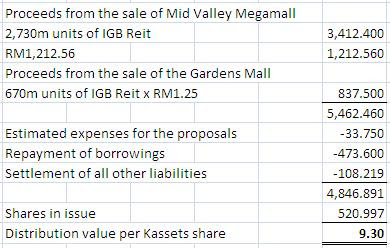 KASSETS = 52.40lot igb reit + 现金RM2 ...