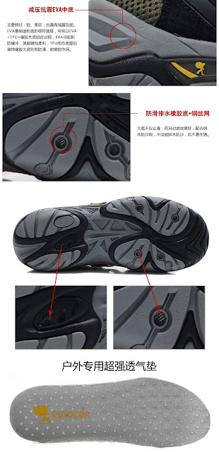 这鞋子属于山溪登山用的鞋子。Adidas也有一个款式叫water grip的也是有排水空。我找了很久,但是Adidas的很贵,offer时在langkawi看到买RM70++但是没有我要的颜色,我要的颜色就新一年的款式,没有offer
