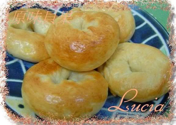 1. 麵包體本身是軟軟的. 燙20秒鐘的貝果表面比較漂亮, 圓滾滾的. 但口感吃起來像是烤的饅頭. 燙1分鐘的口感吃起來比較Q, 比較多了一些嚼勁 |