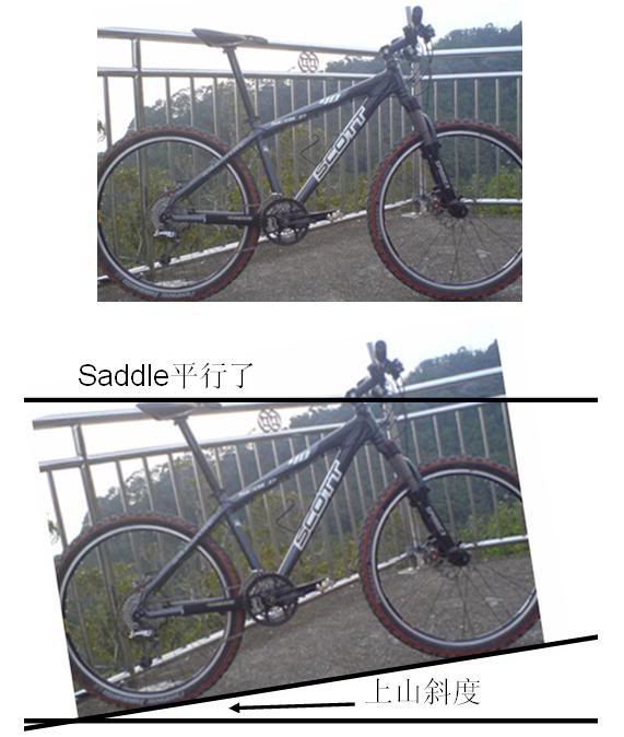 可是如果把Saddle调平行上山时那角度就会变成前高后低了,到了终点蛋蛋会受伤耶。我们上山至少一个小时多才会停下来,所以把它调前低后高是为了保护蛋蛋。