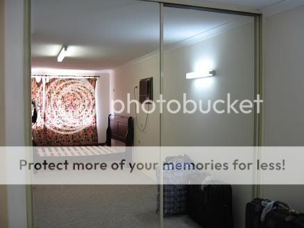你的sliding door wardrobe 整个门都是镜子吗?好特别哦。可是镜子照到床不太好哟。 |